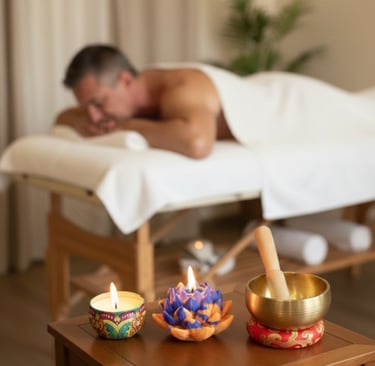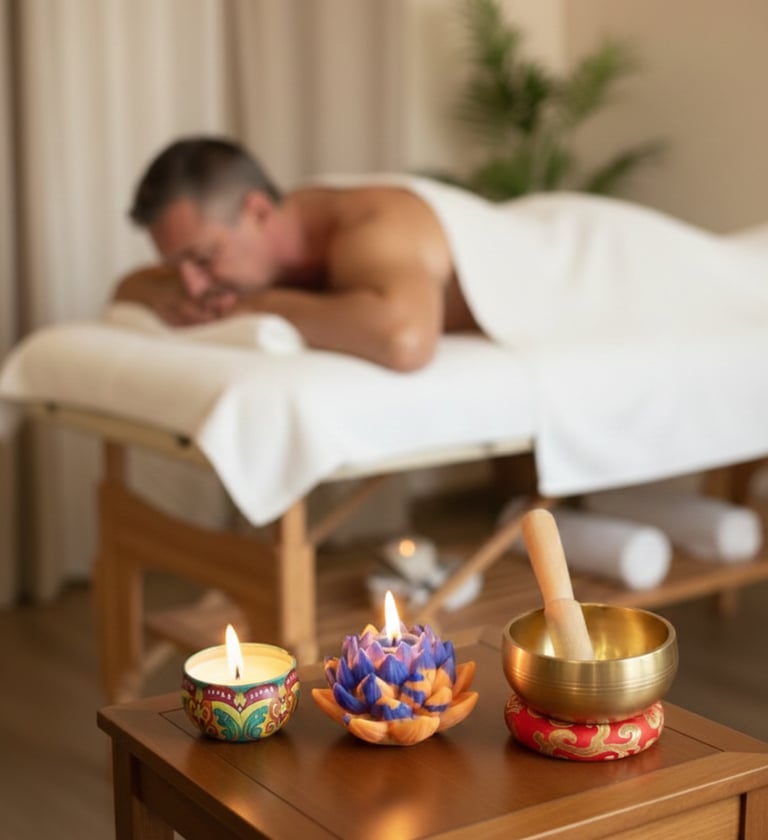 Un rituel doux, inspiré du massage, du silence et de l’énergie du corps, associant bougies végétales et bol tibétain, pour accompagner les moments de détente et de recentrage.